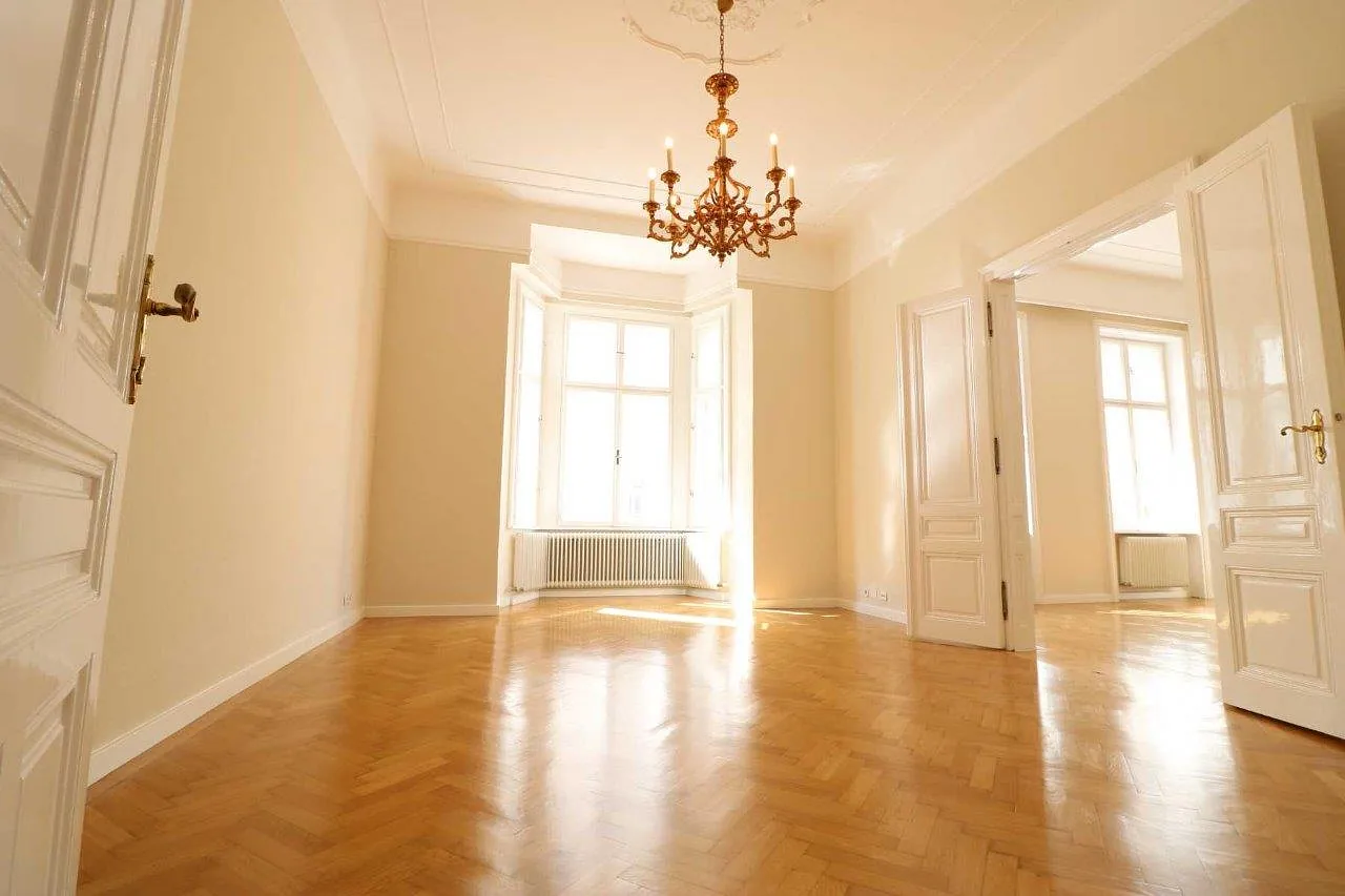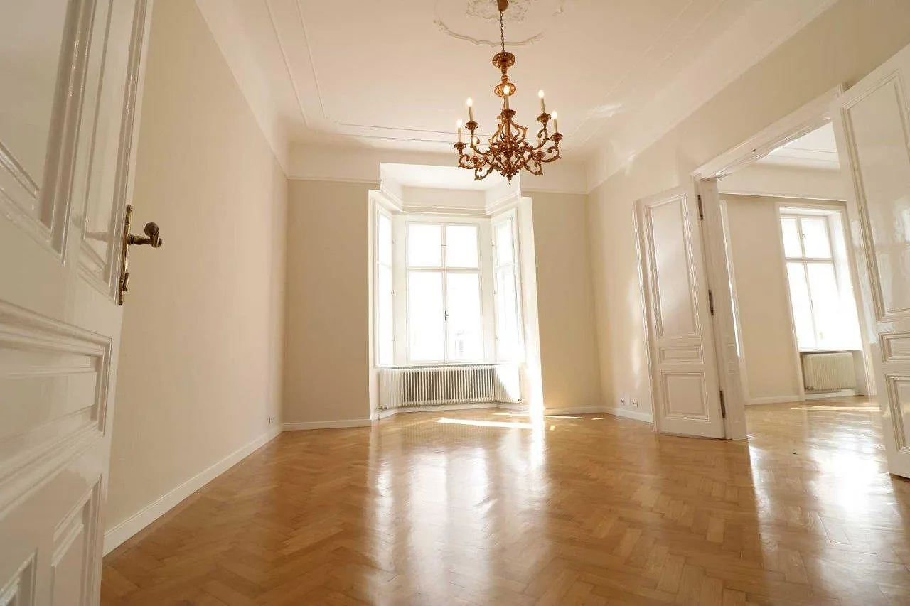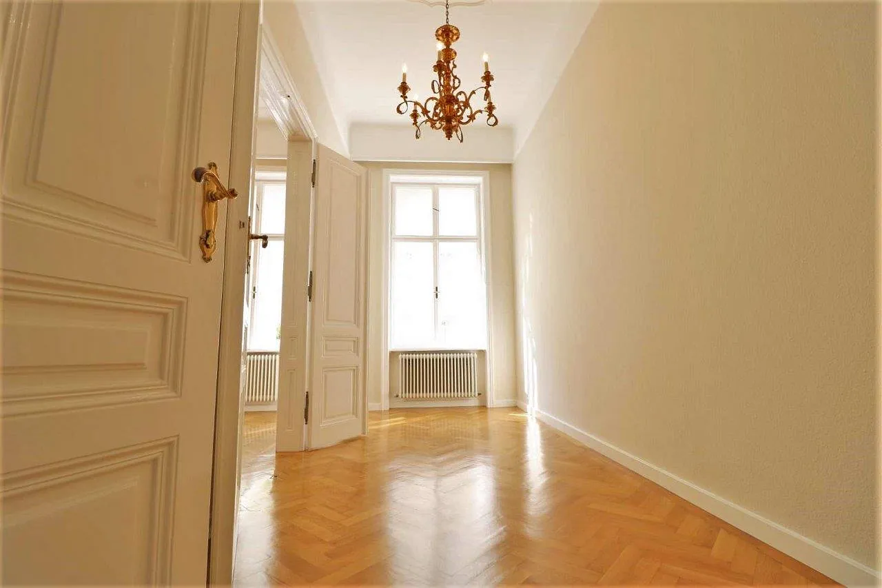 Die ca. 111 m² große Wohnung befindet sich im 2. Stock eines klassischen Wiener Altbaus und überzeugt durch ihre großzügige Raumaufteilung, hohe Decken, prachtvolle Luster, sowie den gelungenen Mix aus historischem Charme und modernem Wohnkomfort.