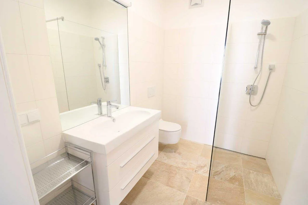 • Badezimmer mit Dusche sowie Waschmaschinen Anschluss